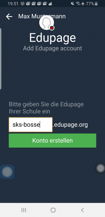 stehenden Feld, wo "edupage" eingetragen ist, Folgendes ein: